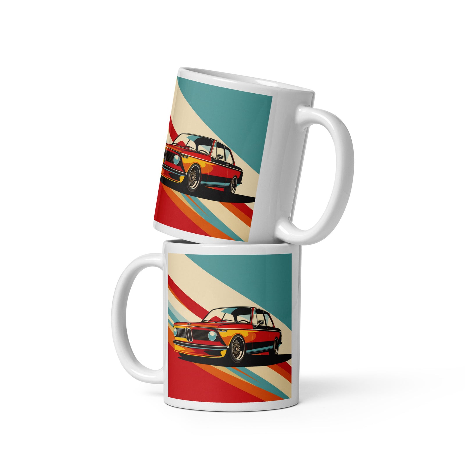 BMW 2002 with German Flag Color Stripes Custom Mug in Four Colors
