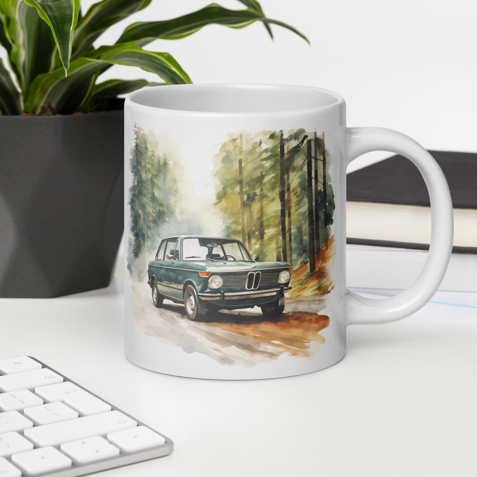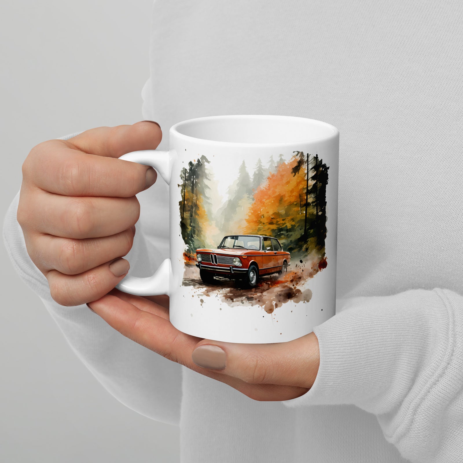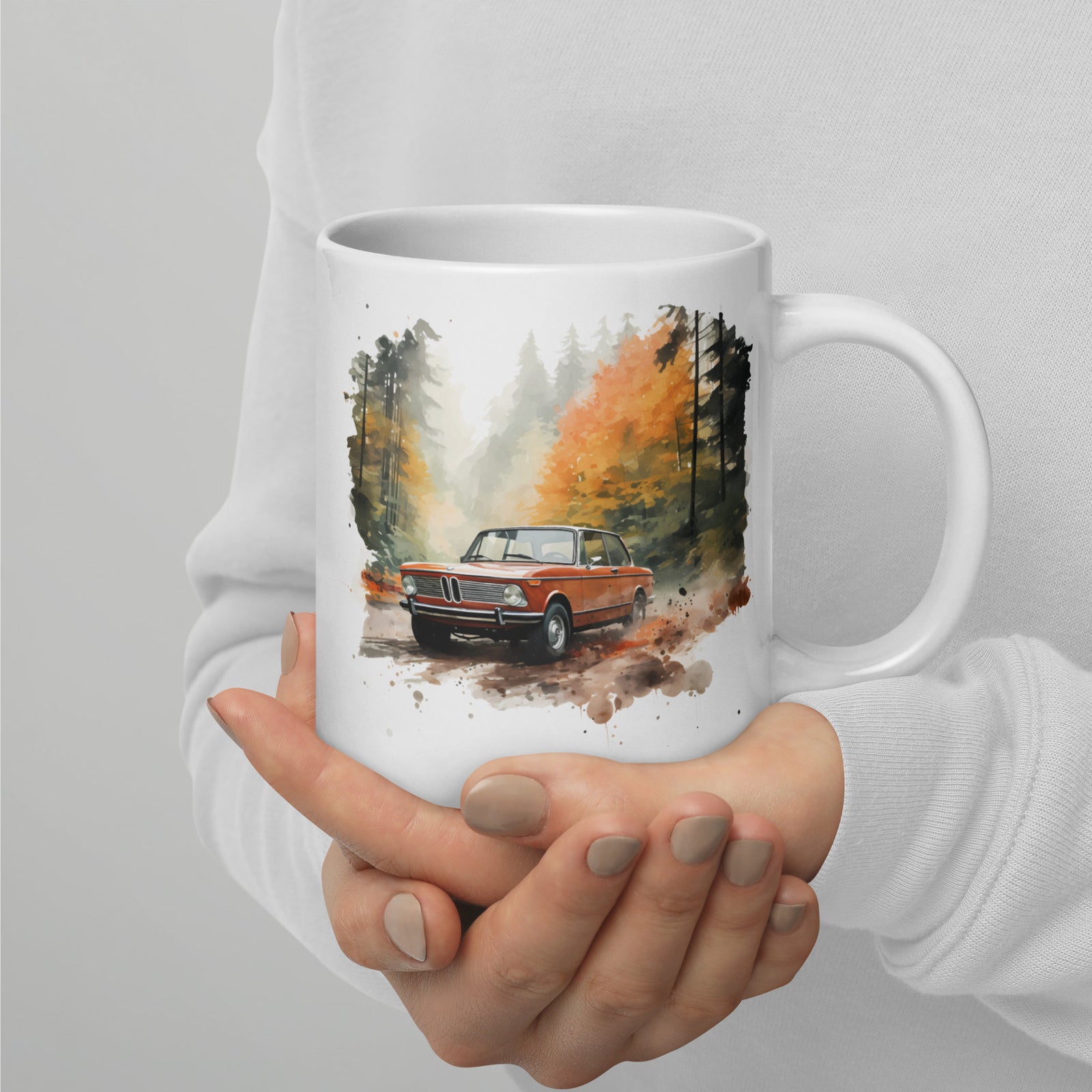 Watercolor BMW 2002 Autumn Forest Drive Mugs