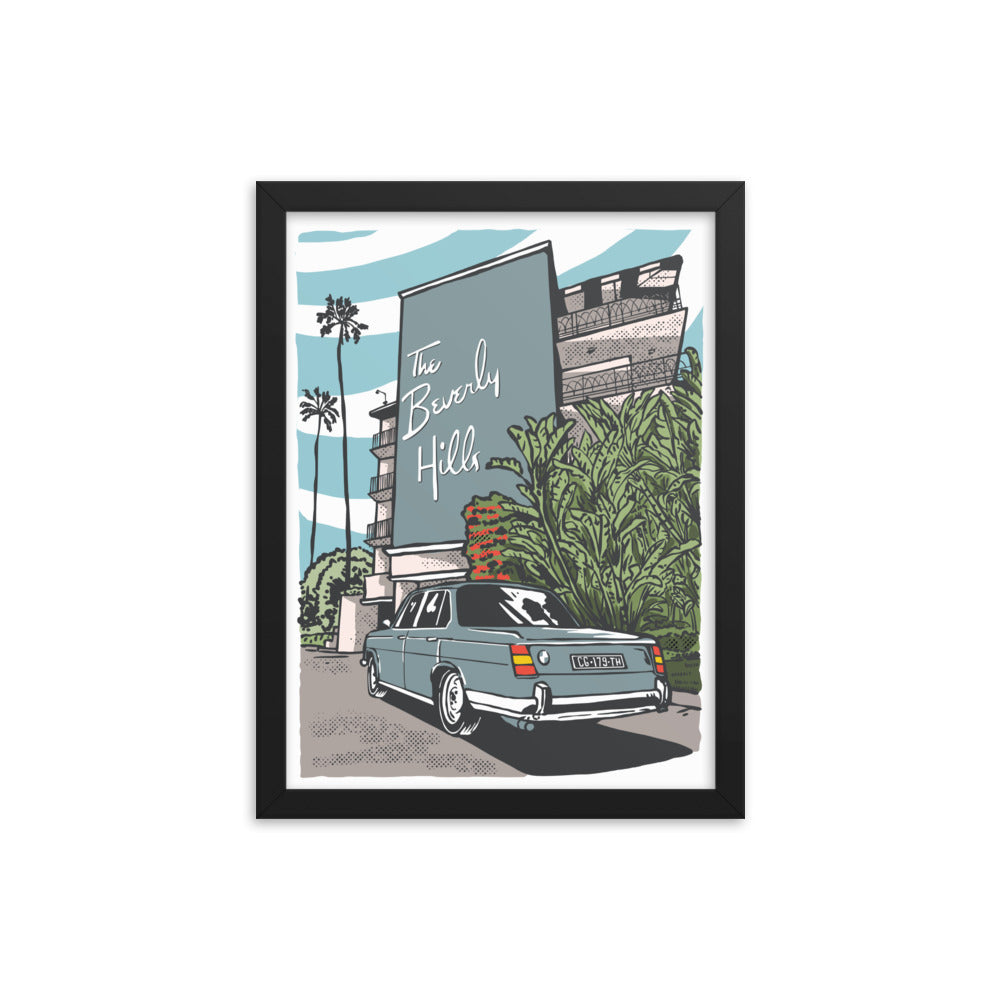 Beverly Hills Hotel BMW Neue Klasse Framed Poster - Vintage Style on Display