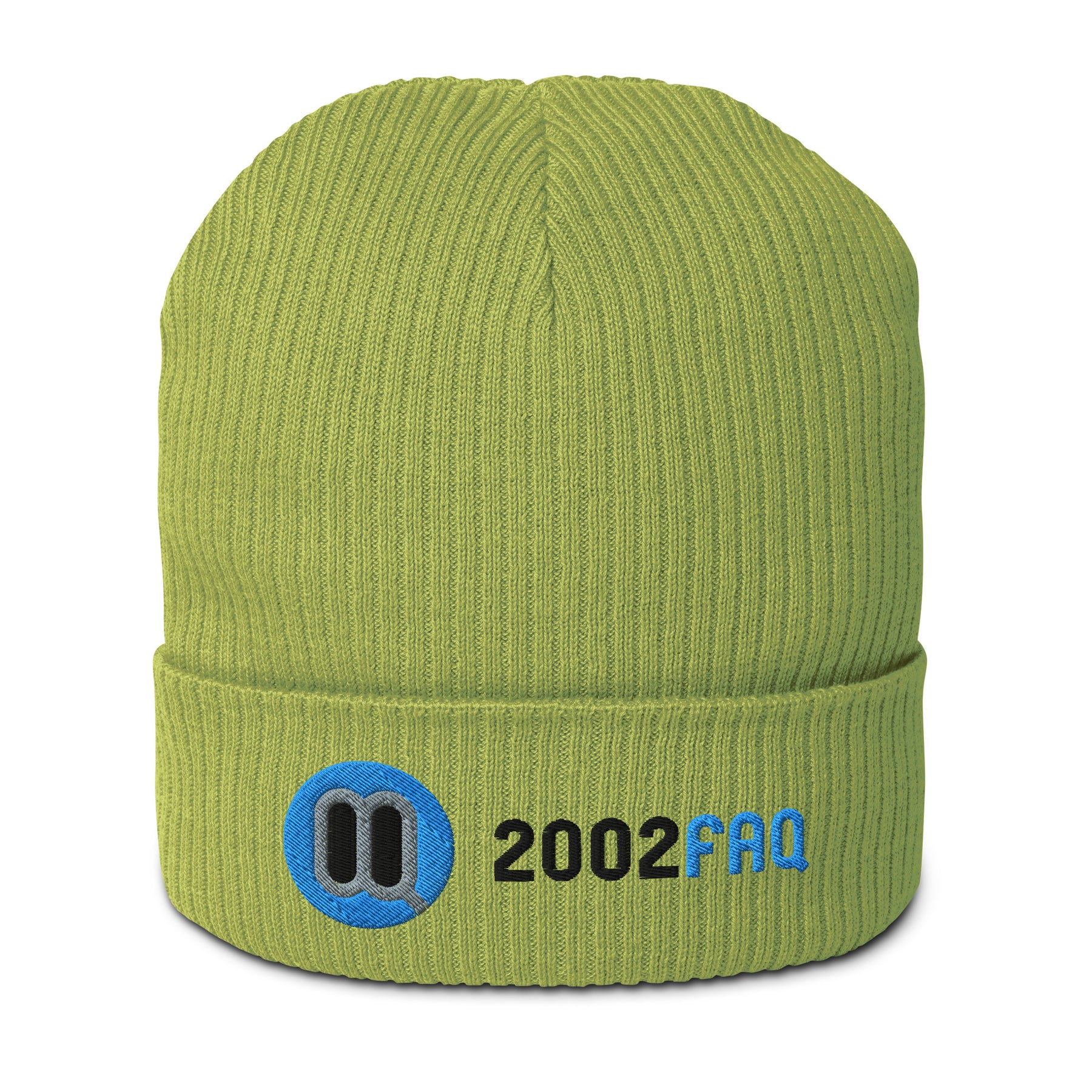 2002FAQ Logo Organic Beanie - Embroidered Design - Eco-Friendly Cuffed Knit