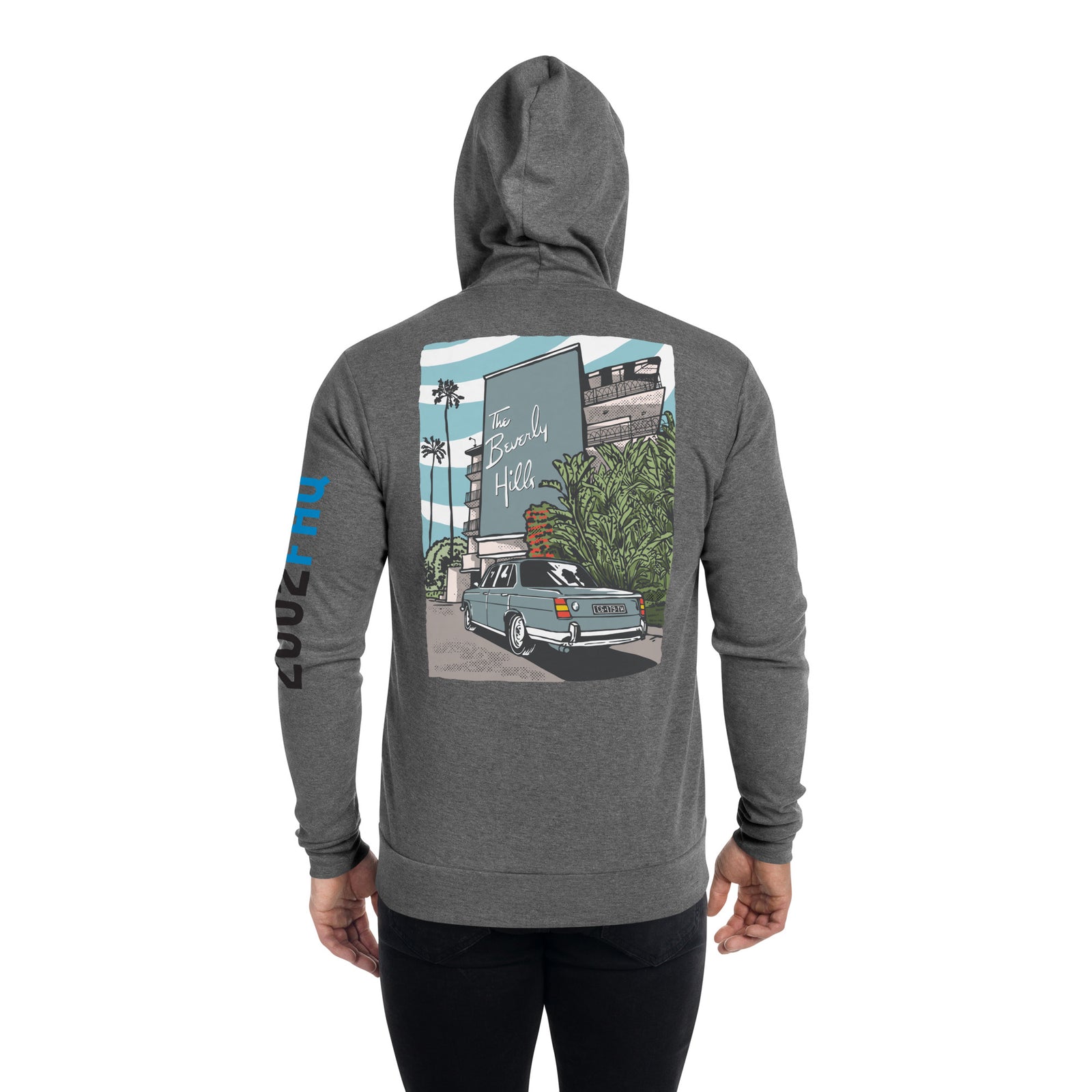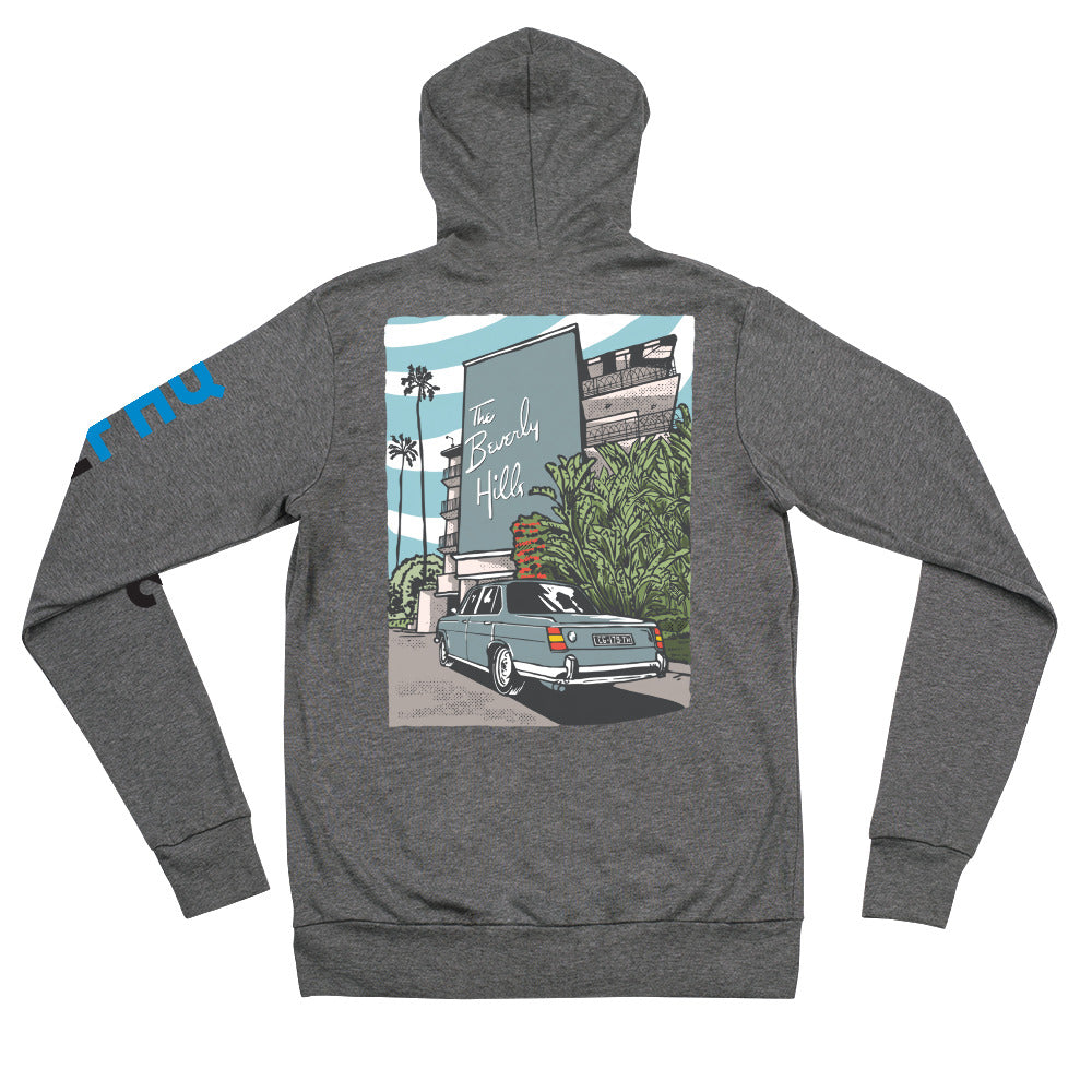 Beverly Hills Hotel BMW Neue Klasse Zip Up Hoodie - Stay Cozy and Stylish