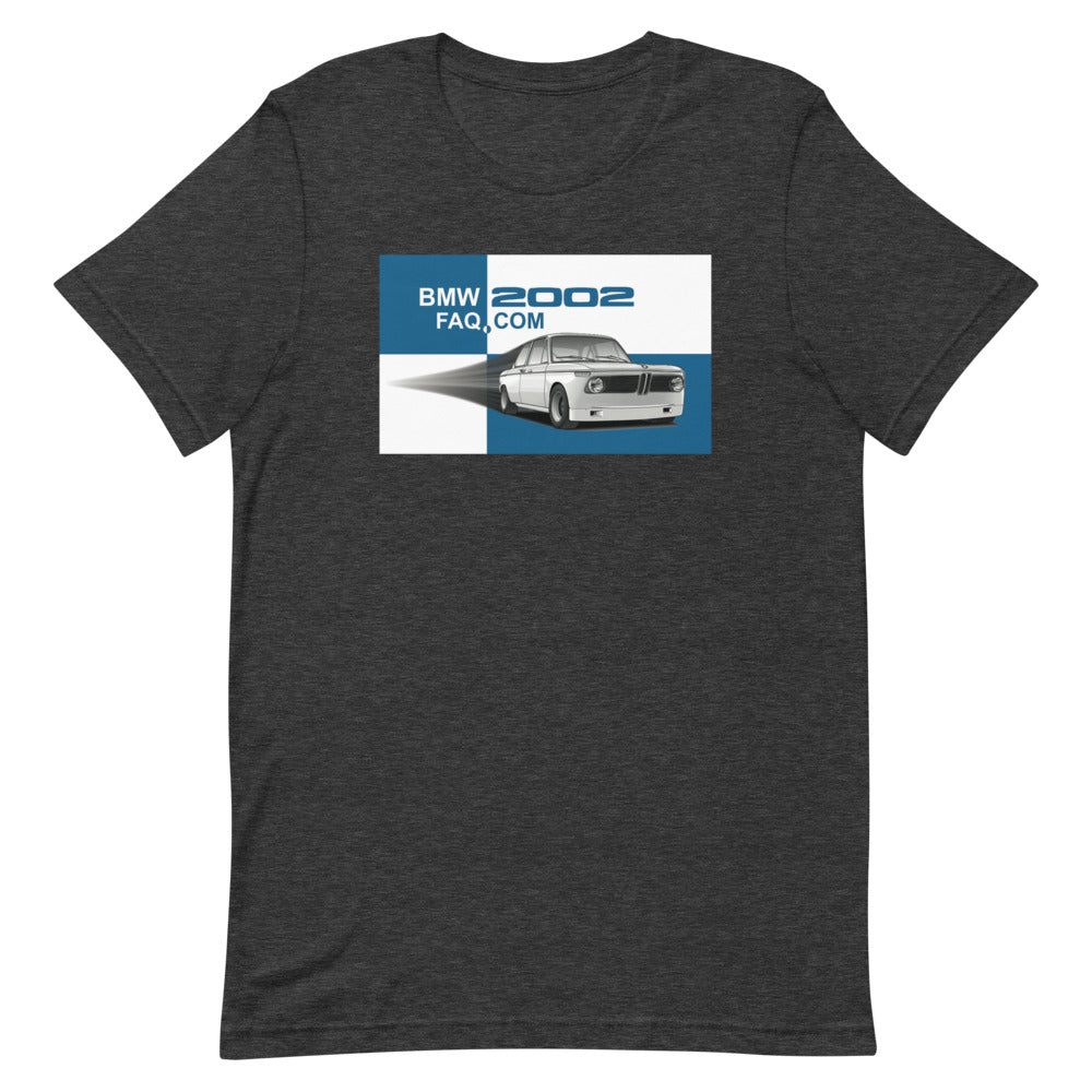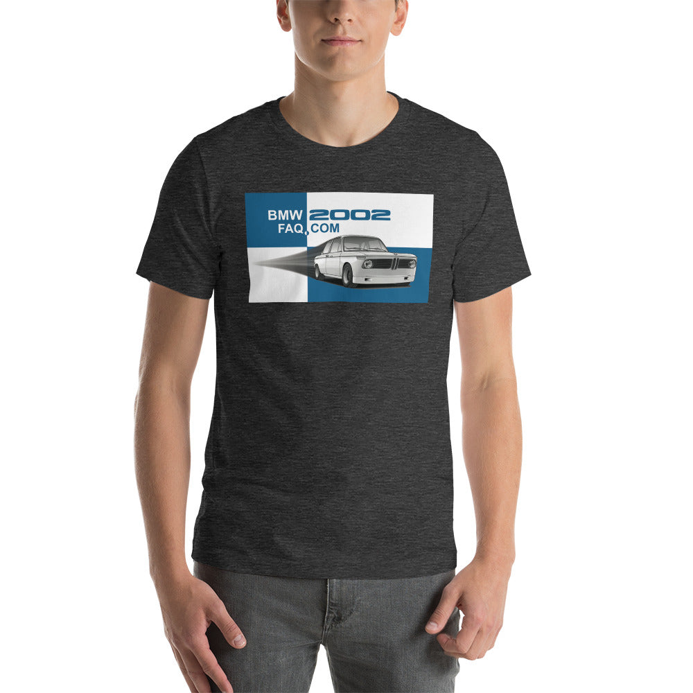 BMW 2002 FAQ Custom T-Shirt - Featuring BMW 2002 Race Car on Bavaria Flag Background